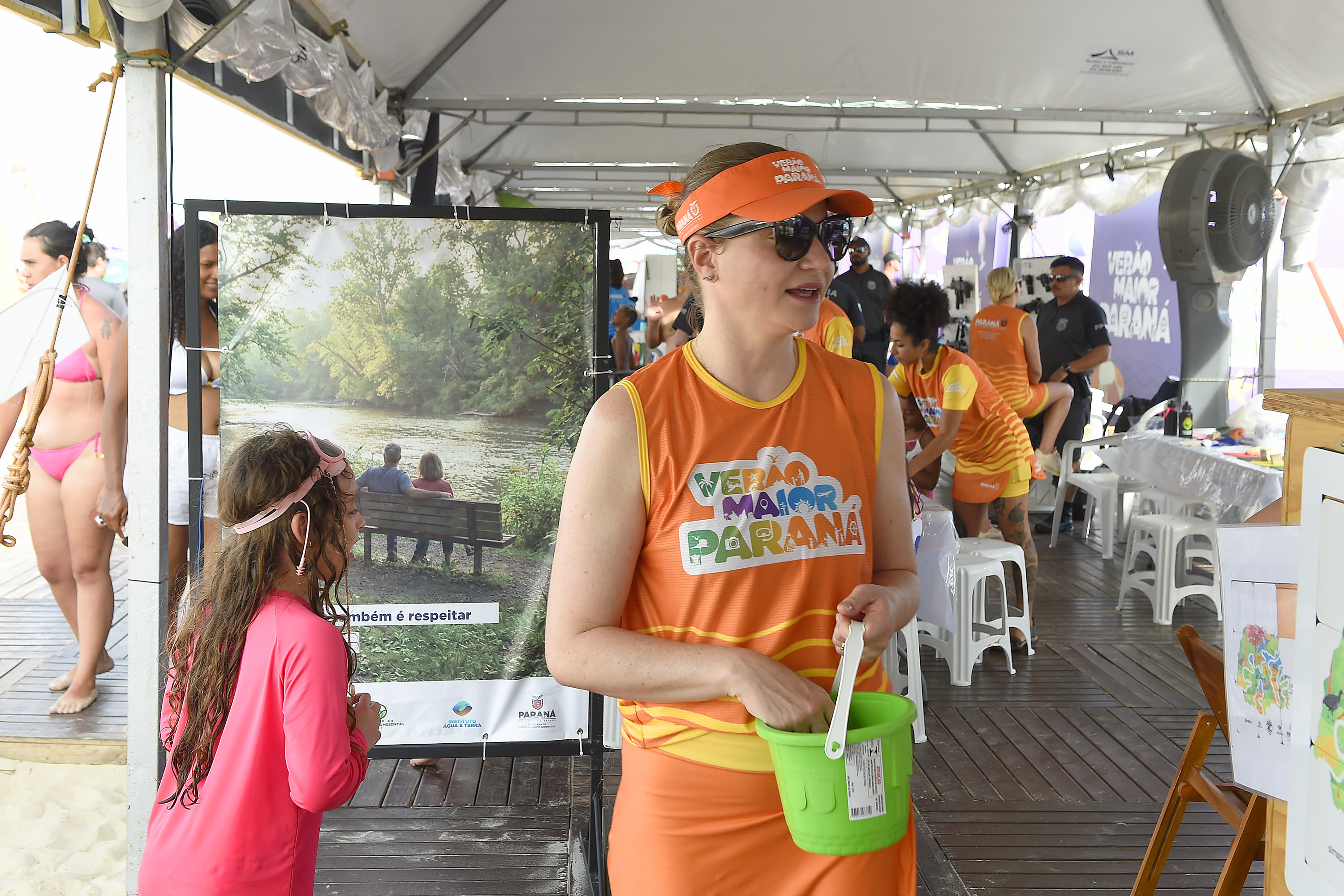 Paralelamente, o IAT também entregou folders com temas relacionados à compostagem, separação de resíduos, lixo no mar, entre muitos outros. Desenvolvidos pelo Instituto e parceiros, o intuito do material é fazer do Verão Maior Paraná um festival que une lazer e conscientização.