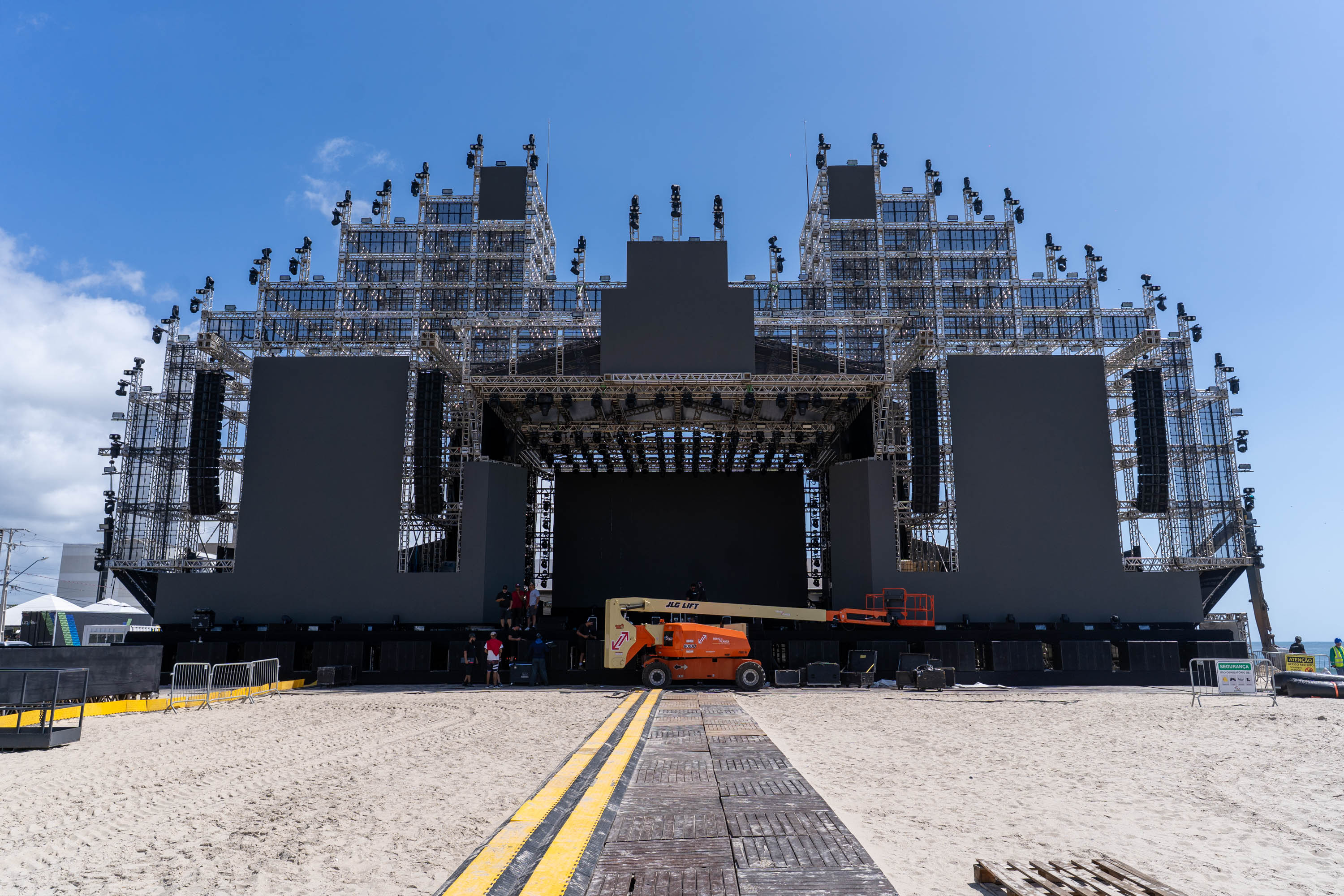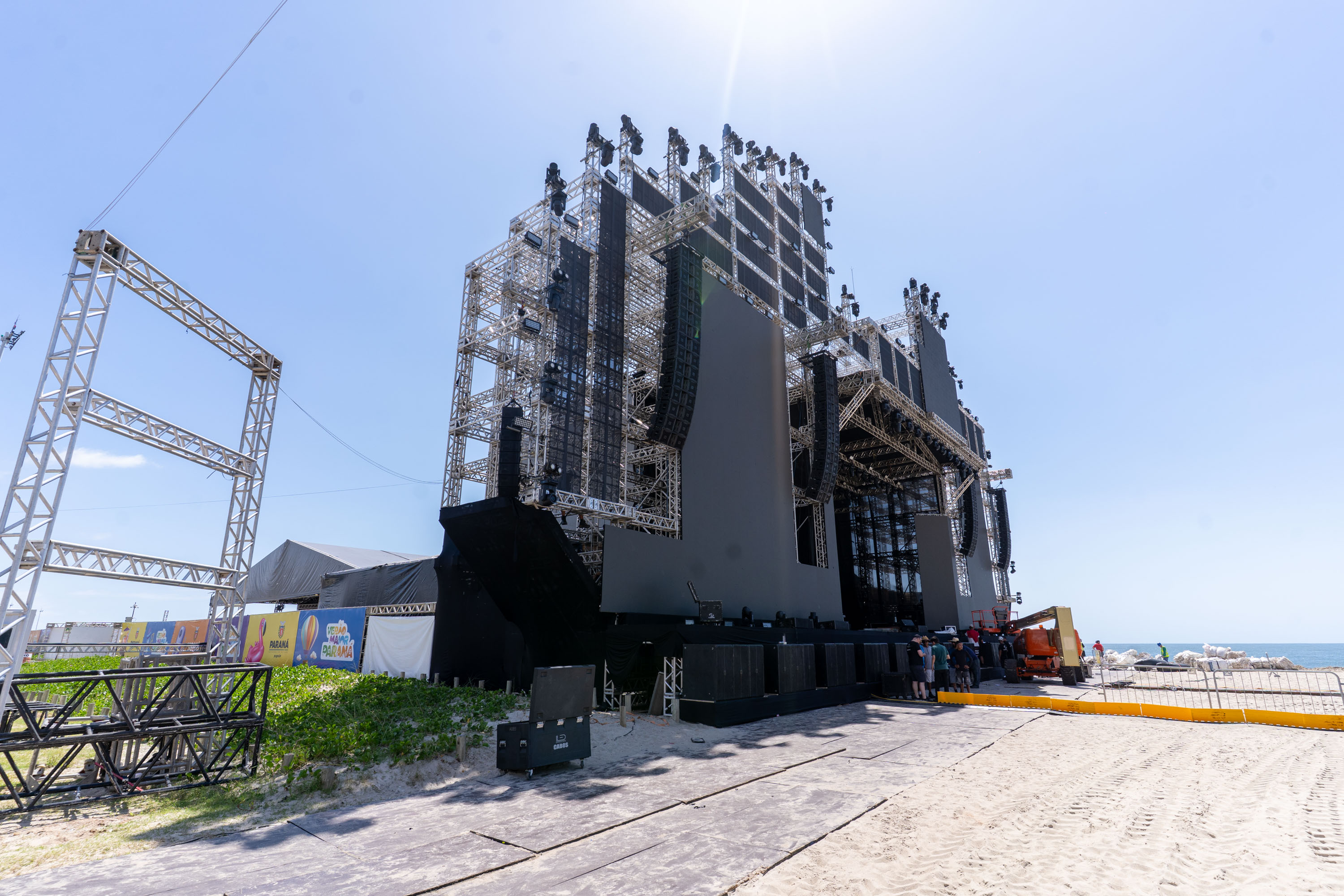 A intervenção também foi planejada para assegurar as condições de balneabilidade da praia e a segurança permanente de banhistas e frequentadores. A configuração final do espaço garantiu ainda uma margem segura para a circulação do público no entorno do palco, com aprovação do Corpo de Bombeiros Militar do Paraná para as saídas de emergência.