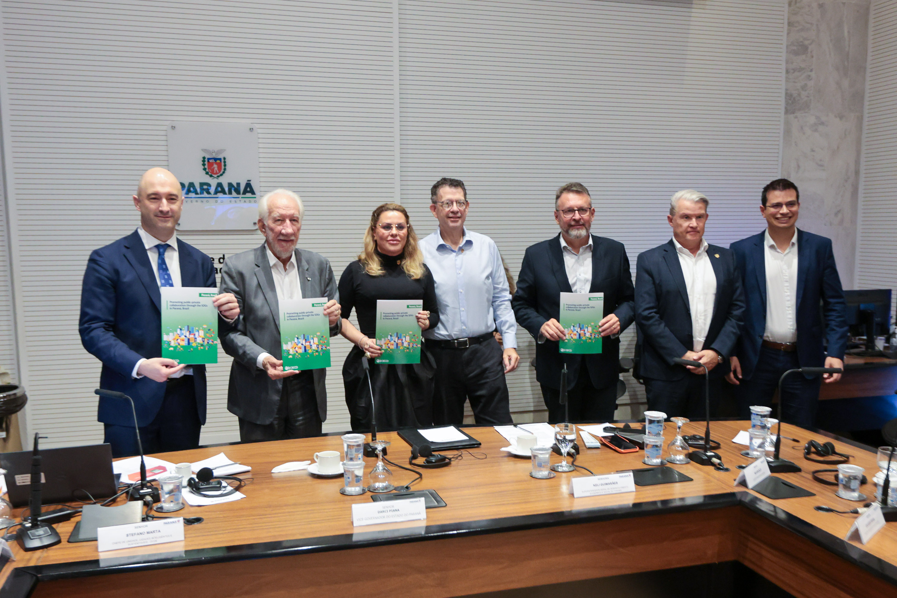 O Governo do Paraná recebeu nesta terça-feira (10) o novo relatório produzido pela Organização para a Cooperação e Desenvolvimento Econômico (OCDE) sobre a implementação dos Objetivos de Desenvolvimento Sustentável (ODS) no Estado, com foco na esfera público-privada. Uma comitiva do órgão mundial entregou o documento ao vice-governador Darci Piana no Palácio Iguaçu, onde também foi renovada a parceria pelos próximos dois anos.